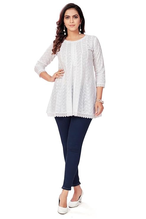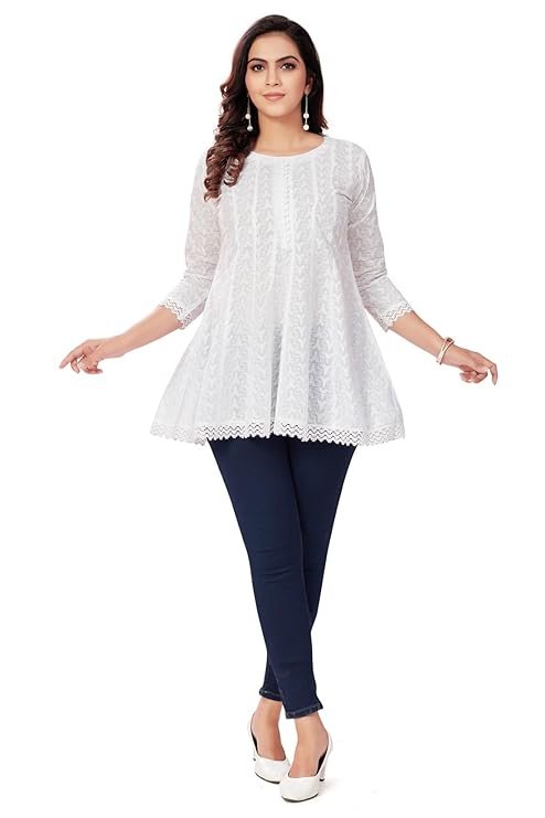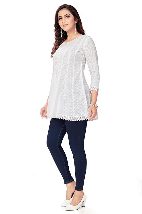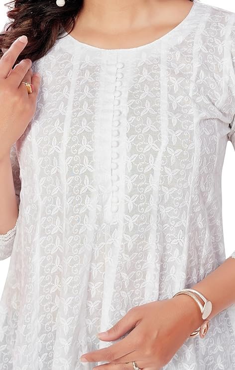 • Color : White Colour || Style : Staight || Length : Hips Length || Embroidery : Floral Embroidery .