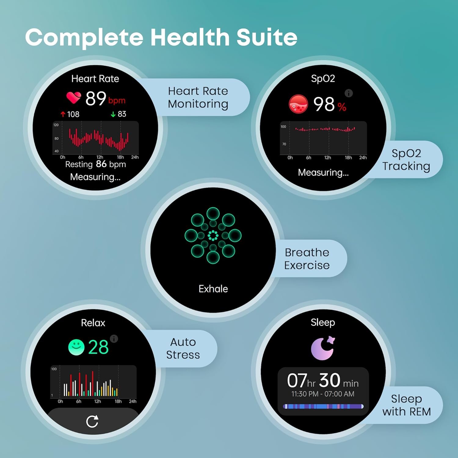 - All-Day Wellness Tracking – Monitor heart rate, SpO2, sleep, and stress with this all-round health smart watch. Perfect for ladies watch lovers or fitness-first men who want form and function in one wearable.